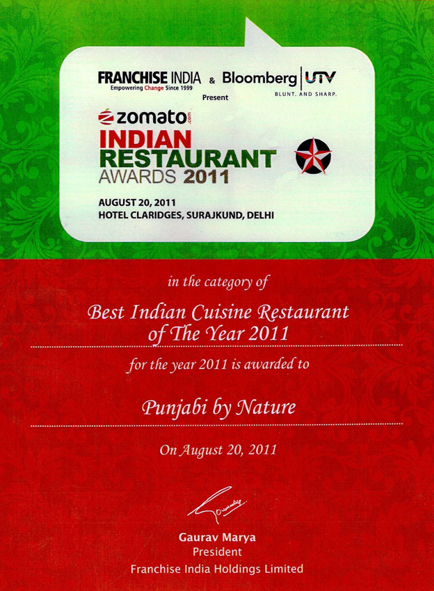 ZOMATO INDIAN RESTAURANT AWARDS 2011